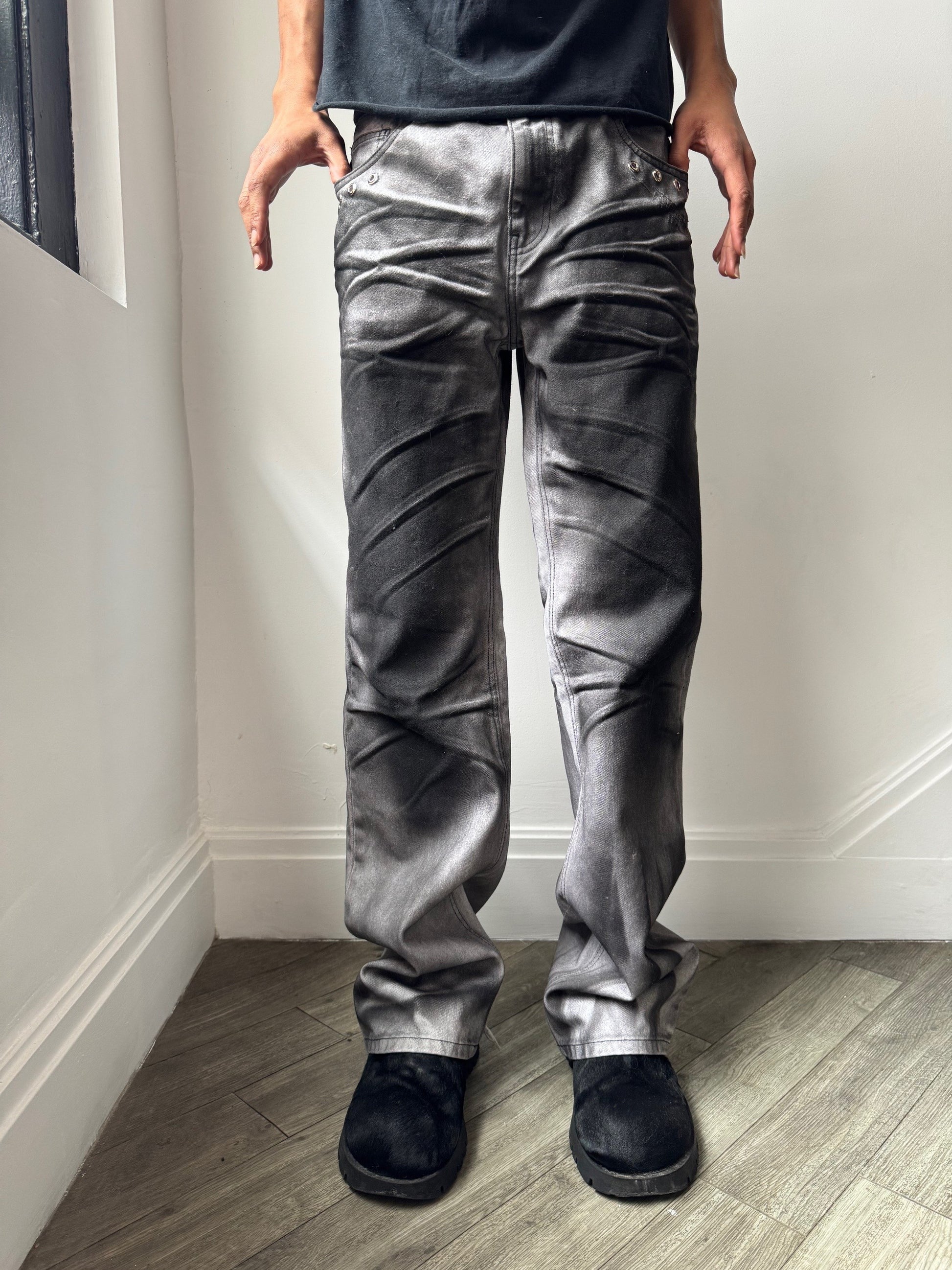 100% cotton, faded denim comes with eyelets on both pockets